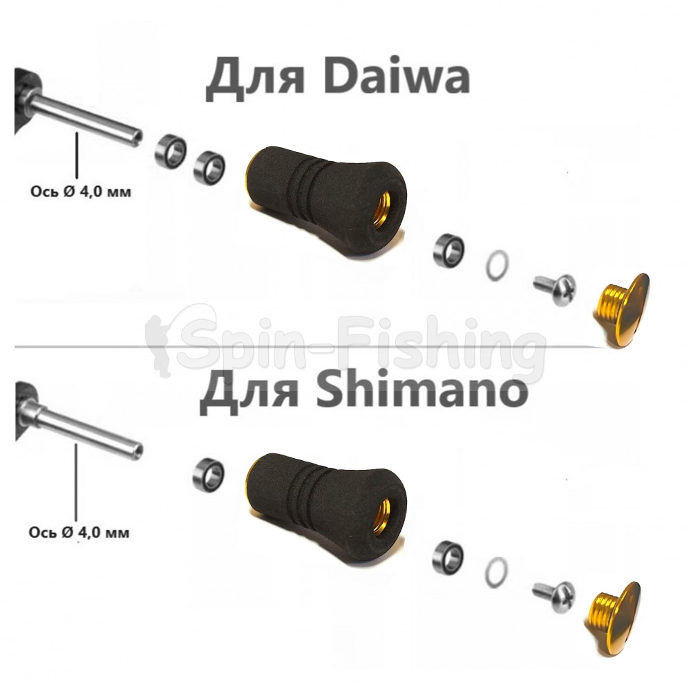 под стандартную ось (диаметр 4 мм, длина: 25-27 мм) с подшипниками 4×7×2,5 мм от 1000 до 4000 размерности для катушек Shimano, Daiwa, Abu
